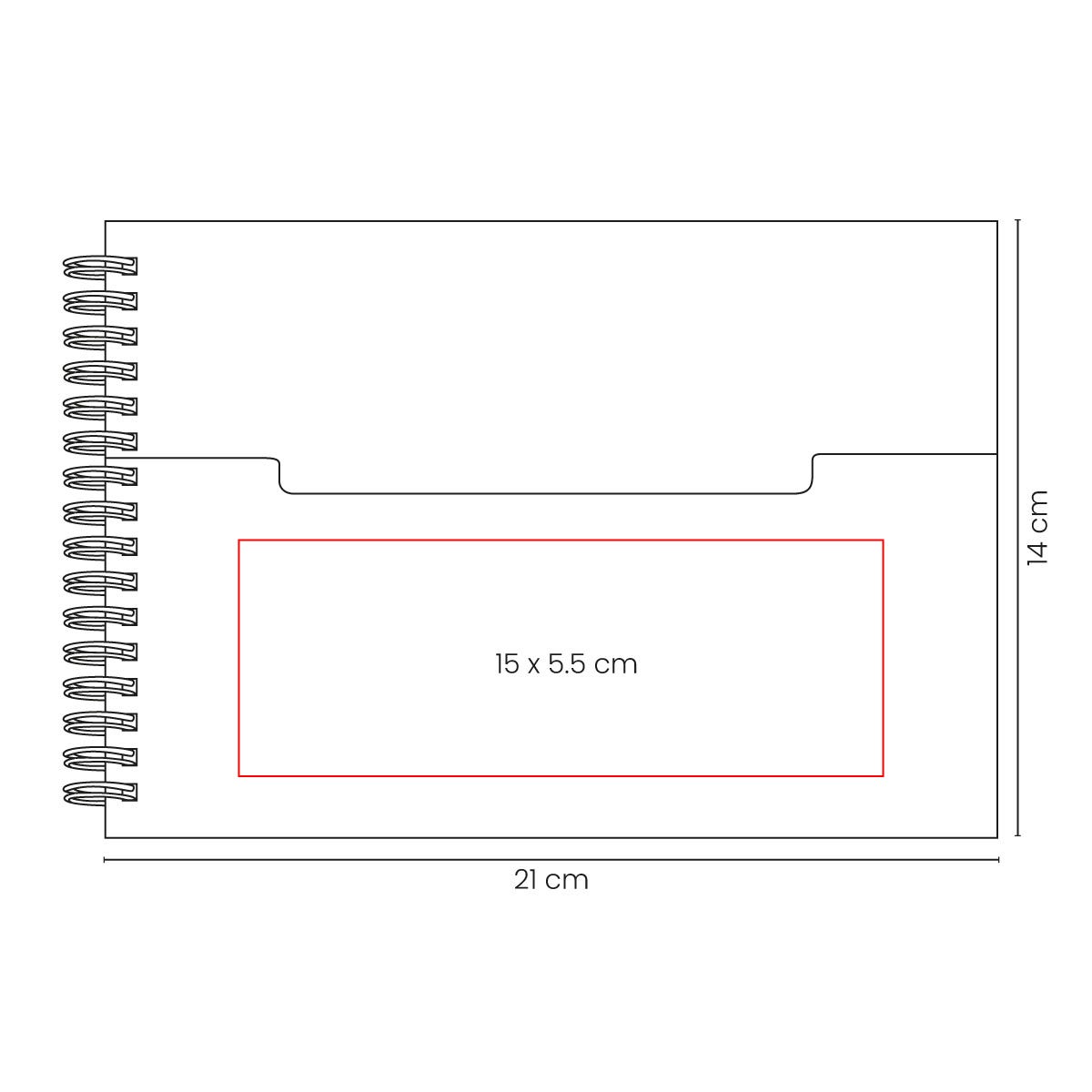 Libreta de espiral con 80 hojas a rayas. Cubierta de cartón y bolsillo frontal para llevar pequeños documentos. Fabricada con papel de algodón, es una opción ecológica y respetuosa con el medio ambiente. Su formato horizontal, la hace diferente y práctica para llevar tus notas.
