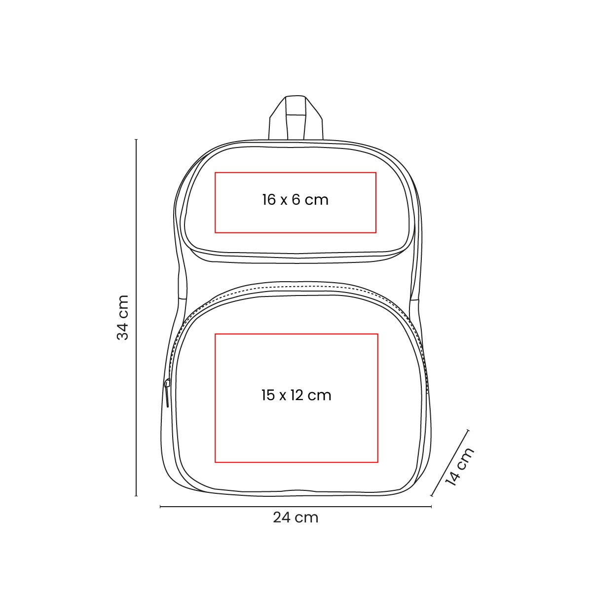 Área:16 x 6 cm (bolsa superior) /15 x 12 cm (bolsa inferior)