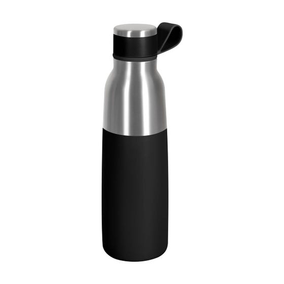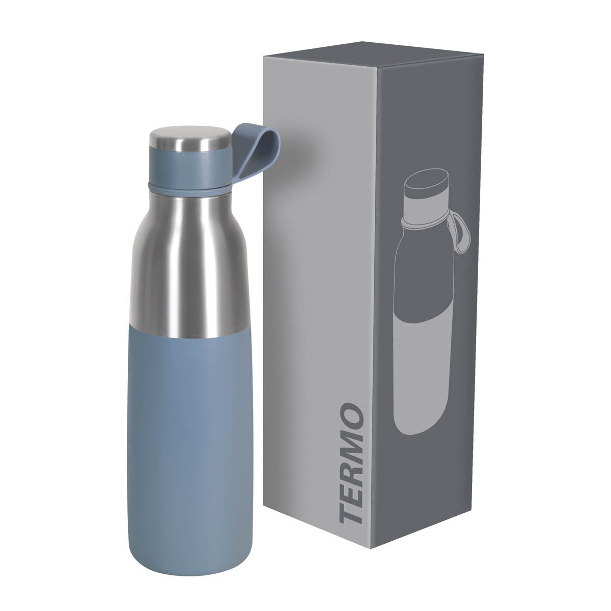 Termo doble pared. Cerrado al vacío. Pared interna y externa acero inoxidable. Tapa con sistema de rosca. Asa de silicón que permite llevarlo a todos lados. Mantiene temperatura caliente 6 hrs y temperatura fría 8 hrs aproximadamente. Incluye caja individual.