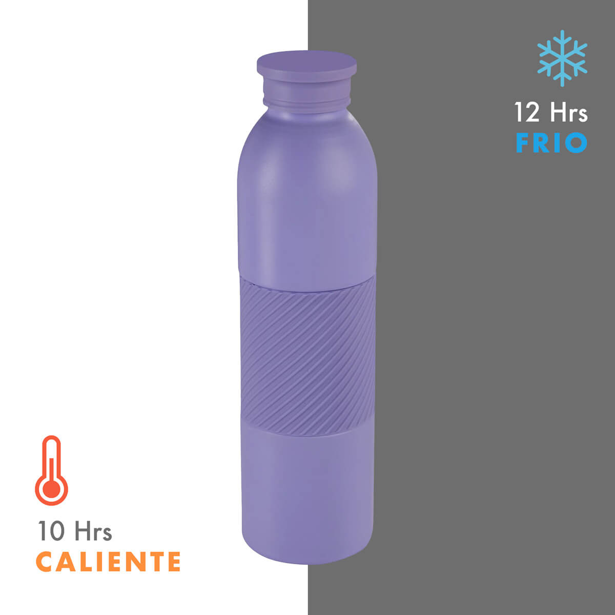Termo doble pared. Cerrado al vacío. Pared interna y externa acero inoxidable. Tapa de plástico con sistema de rosca. Incluye una manga de silicón texturizado, que le permite tener un mejor agarre. Mantiene la temperatura caliente por 10 hrs y la temperatura fría por 12 hrs. Capacidad de 20 Oz. Caja individual incluida.